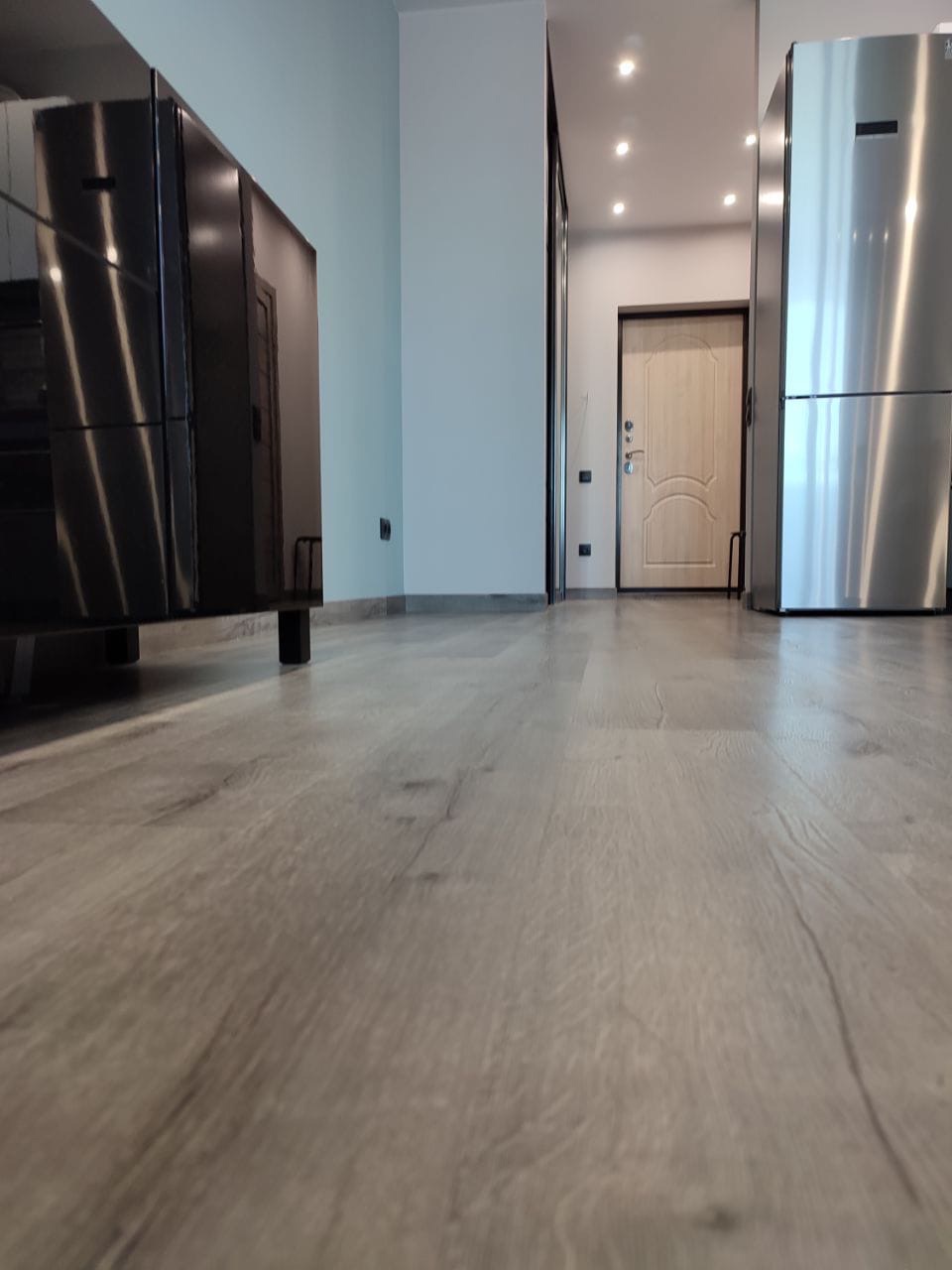 Кварцевый ламинат очень отличного качества, приятно ходить, не продавливается мебелью, . КРАСИВАЯ ЦВЕТОВАЯ ГАММА НА ВЫБОР. Не видно стыков.
